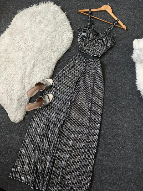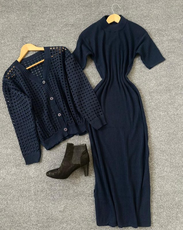 ست بافت ژیله و سارافون نیم آستین کد 1609