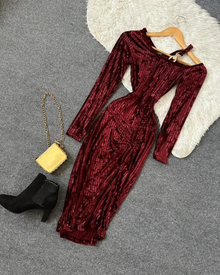 پیراهن مخمل جلوگت دار کد 1575