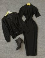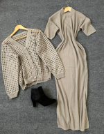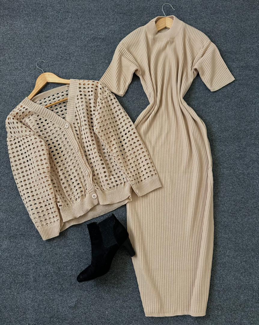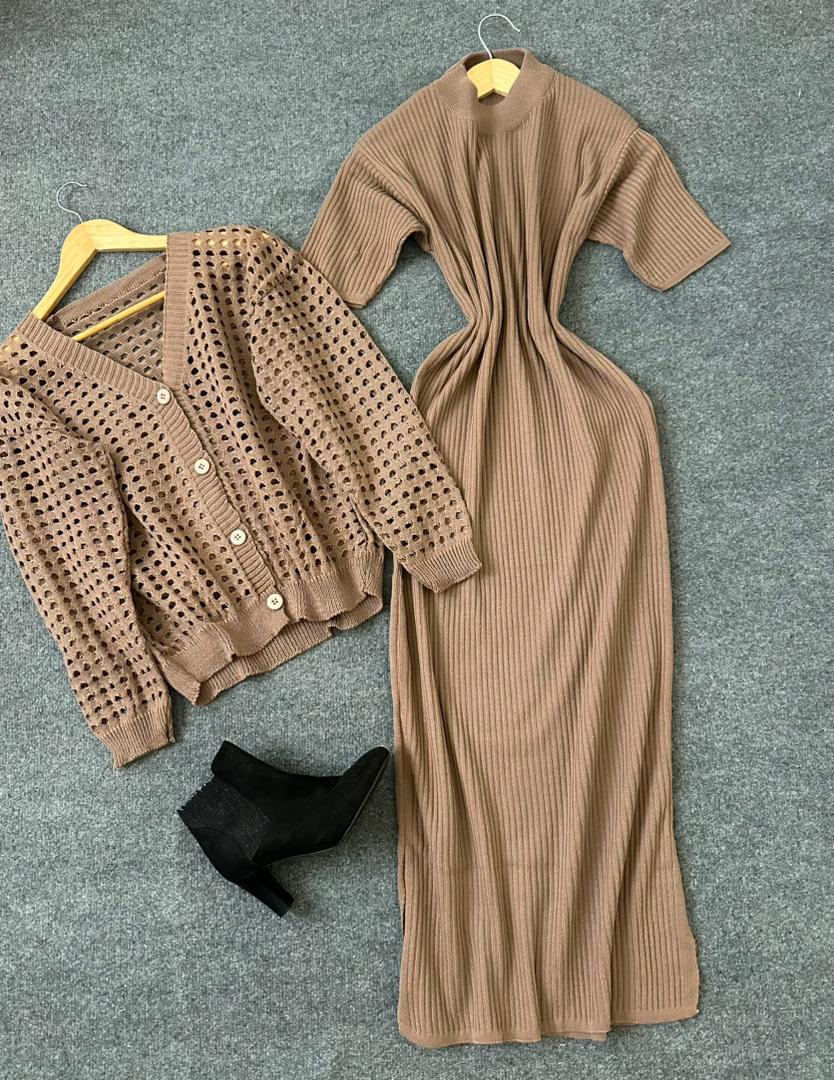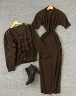 ست بافت ژیله و سارافون نیم آستین کد 1609