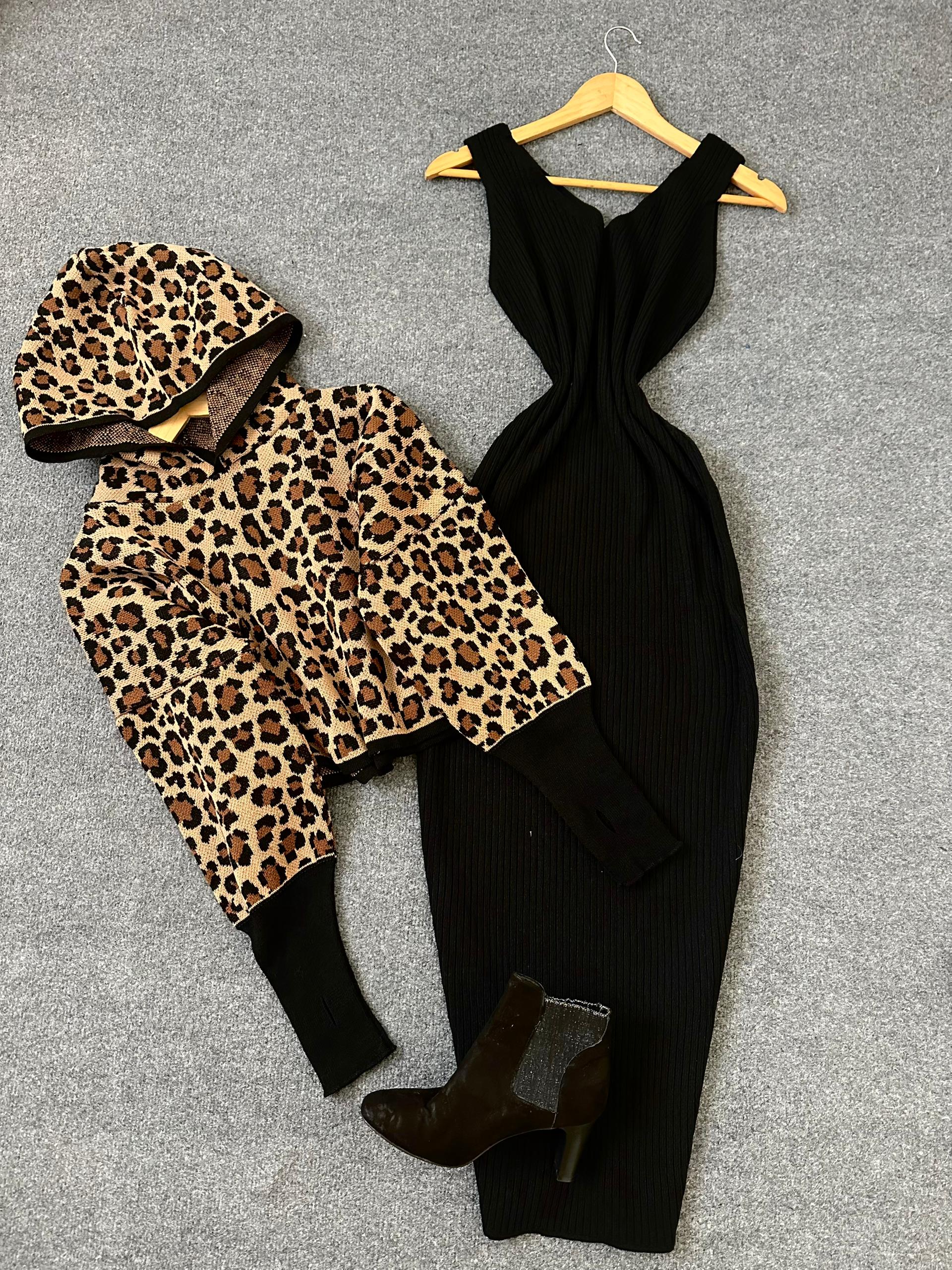 ست بافت ژیله و سارافون نیم آستین کد 1609
