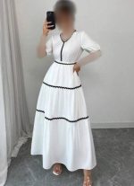 پیراهن مانتویی ترکیبی خامه دوزی کد 1424