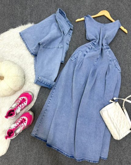 ست جین کراپ و پیراهن پشت گره ایی کد ۱۵۸۹